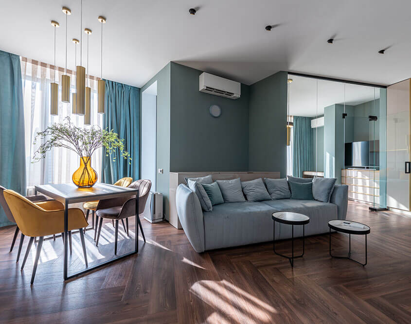 Mirrors and reflective surfaces are excellent tools for making a room feel larger. Mirrors reflect light and create the illusion of depth, making a room appear more spacious—place mirrors opposite windows to maximise natural light reflection. Reflective furniture and decor items, like glass tables or metallic accents, can also help. These elements bounce light around the room, enhancing the sense of openness. Incorporating mirrors and reflective surfaces strategically can transform a cramped space into a more expansive one.